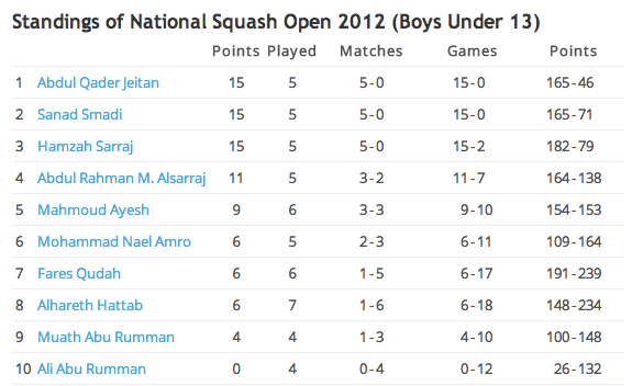 Yesterday evening Monday, 27th Auguste 2012 the Kingdom’s Jordan Squash Open BU13 continued and 5 matches were played: